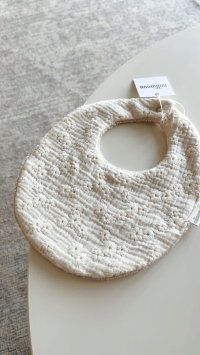 Tissu gaze de coton 100% biologique à l’avant et éponge bambou/coton extra doux à l’arrière.