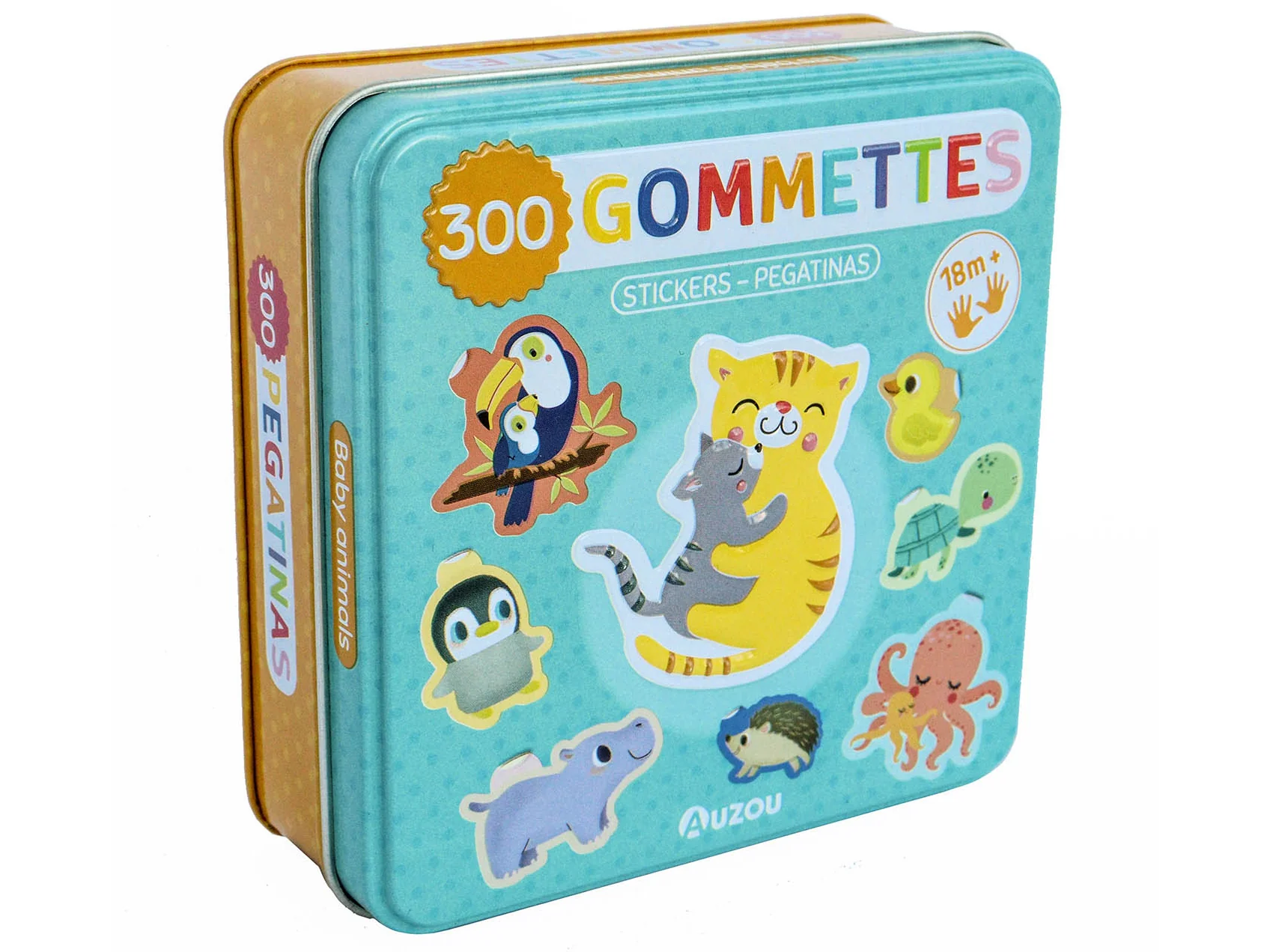 Découvre 300 gommettes sur le thème des bébés animaux dans une belle boîte en métal. Garde cette boîte pour ranger tes gommettes et tous tes trésors !