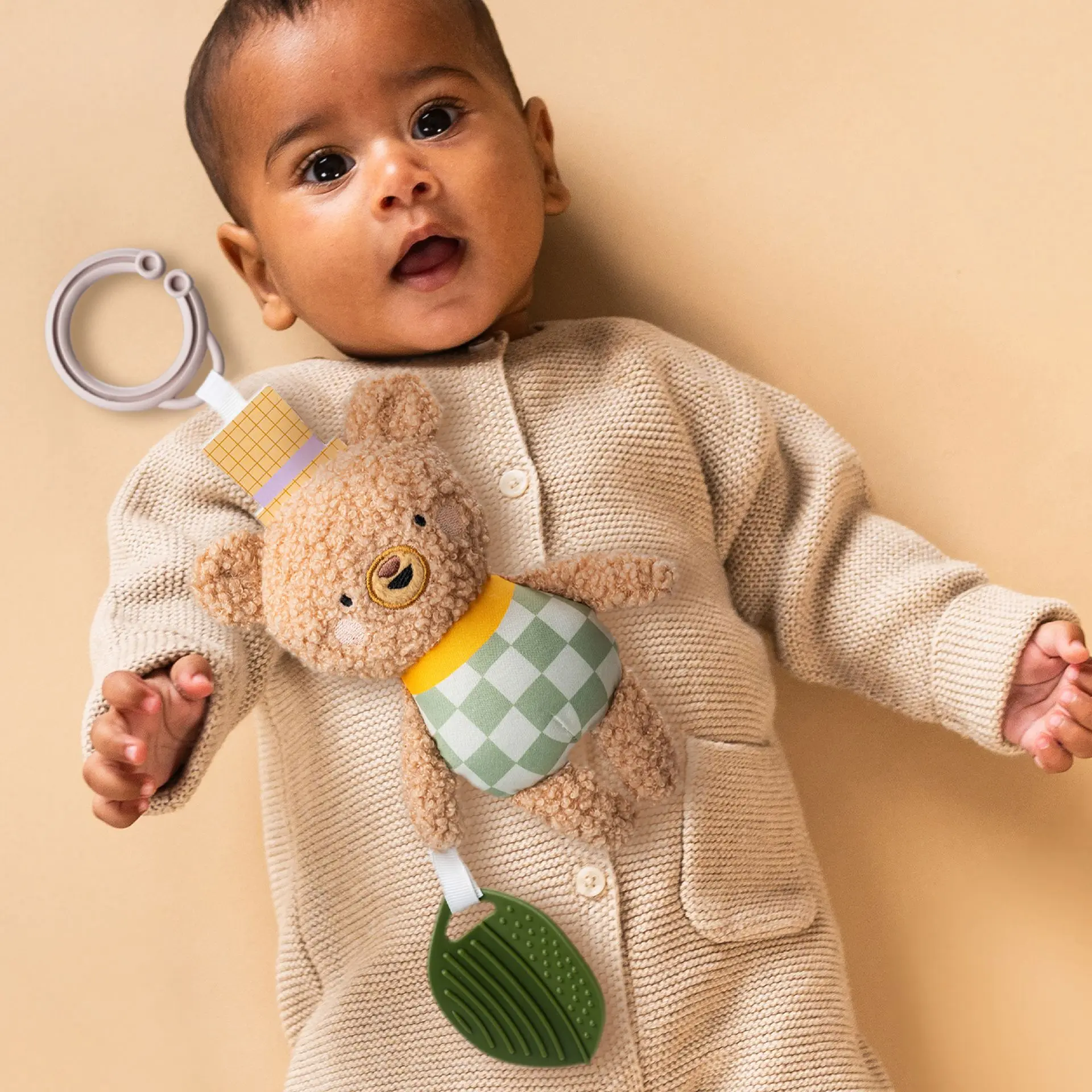Cet ours en peluche tout doux, appelé Brandon, s’attache facilement au siège auto ou à la poussette et tient compagnie à votre bébé pendant les déplacements. Avec sa petite clochette qui tinte doucement et son anneau de dentition en forme de feuille, il stimule les sens de votre bébé. Le compagnon de voyage idéal pour divertir ou réconforter votre tout-petit.