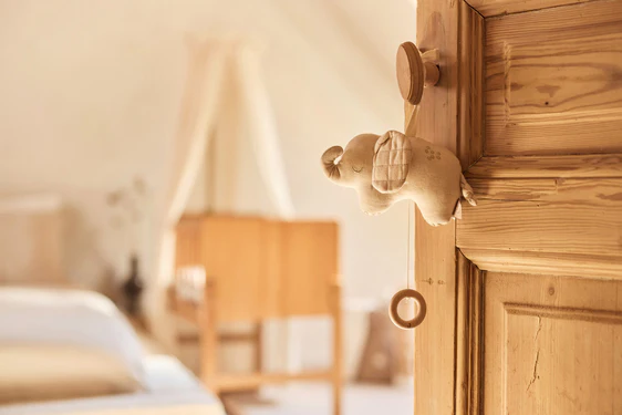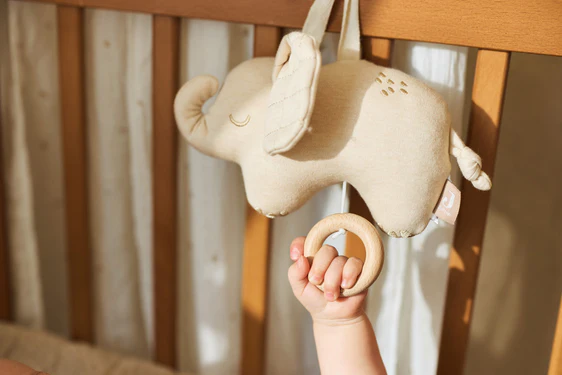 Ce joli mobile musical donne vie à la douce berceuse « Schubert’s Lullaby » et aide bébé à s’endormir. L’anneau en bois permet d’activer la musique, et la petite boucle complète joliment le design. Les oreilles à carreaux et le tissu en coton biscuit apportent une ambiance douce et chaleureuse. Une belle touche déco pour la chambre de bébé !