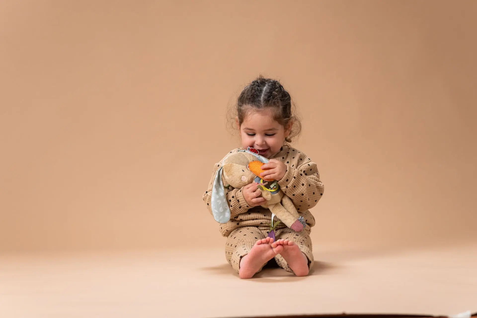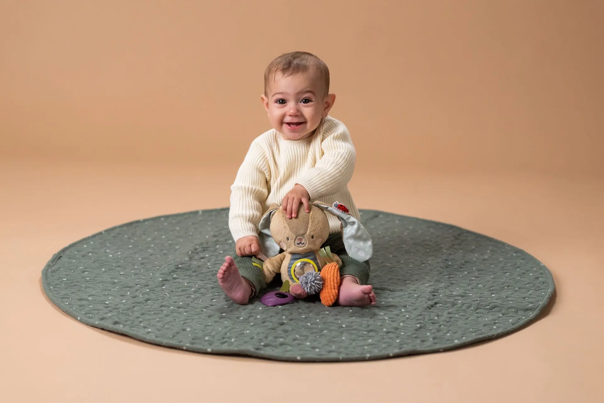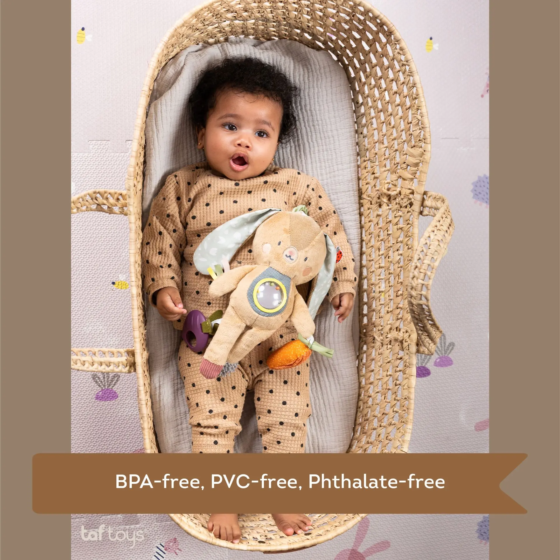 Jenny Activity Bunny est un jouet multifonctionnel conçu pour divertir et stimuler les bébés et les jeunes enfants. Ce lapin tout doux possède différentes textures, des oreilles et des pattes qui crépitent, ainsi qu’un hochet qui permet aux bébés ‘explorer différentes expériences sensorielles. Il comprend également un anneau de dentition, une boule perlée translucide et un couinement. Le jouet est facile à attacher à un siège auto ou à une poussette. Le jouet est conçu pour aider à développer la motricité fine, la coordination oeil-main et les capacités cognitives.
