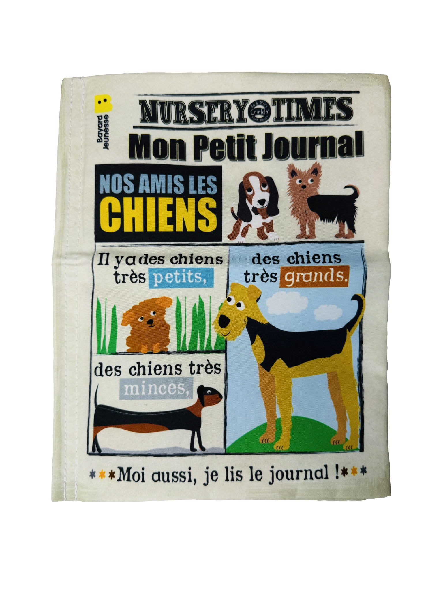 Les tout-petits en sont fous ! Ce livre bébé en tissu crépite quand on le manipule. Les tout-petits ne se lasseront pas de froisser, serrer, secouer, tourner les pages colorées. Ce livre sur les chiens ressemble à un petit journal car, OUI, même les bébés ont le droit de lire le journal !