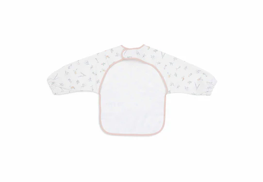 Ce bavoir à manches est génial ! Comme un joli petit tablier avec des manches pratiques, il protège parfaitement les vêtements de votre bébé ou de votre jeune enfant . Vous vous êtes déjà demandé pourquoi il y a une double couche de tissu au bas du bavoir ? Cela a été bien réfléchi ! Lorsque l’enfant mange de manière autonome, la nourriture coule régulièrement sur le menton par-dessus le bavoir, mais le bord inférieur du bavoir l’attrape comme une petite gouttière très pratique. Nulle doute que vous l’apprécierez ! Non seulement pratique à l’heure des repas, mais également lors des activités de bricolage et de peinture au doigt. Dans le cadre de notre thème « Lovely Birds », ce bavoir est encore plus mignon. Agrementé de brindilles et d’oiseaux, il est même orné d’un petit écusson supplémentaire représentant une fleur.
