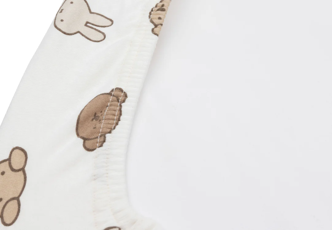 Rendez le moment du change encore plus doux avec cette housse en jersey moelleux. Le tissu extensible s’adapte parfaitement au matelas et est confortable pour la peau. L’imprimé Miffy and Friends ajoute une touche ludique et chaleureuse à la chambre de bébé. S’adapte parfaitement à un matelas à langer standard de 50×70 cm, reste bien en place grâce aux coins élastiques.