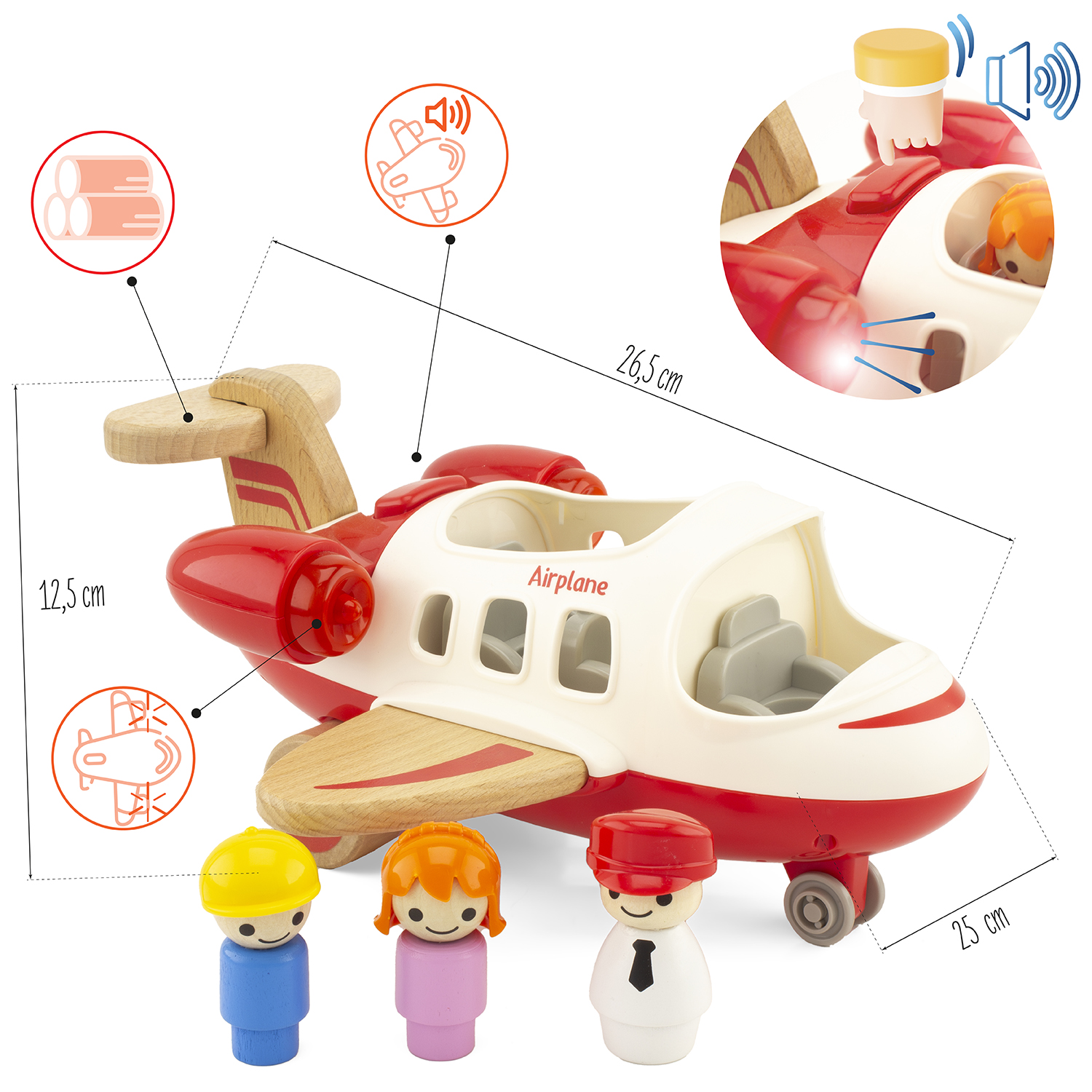 - Personnages inclus : livré avec 3 personnages en bois, dont un pilote et deux passagers, pour des histoires encore plus amusantes.