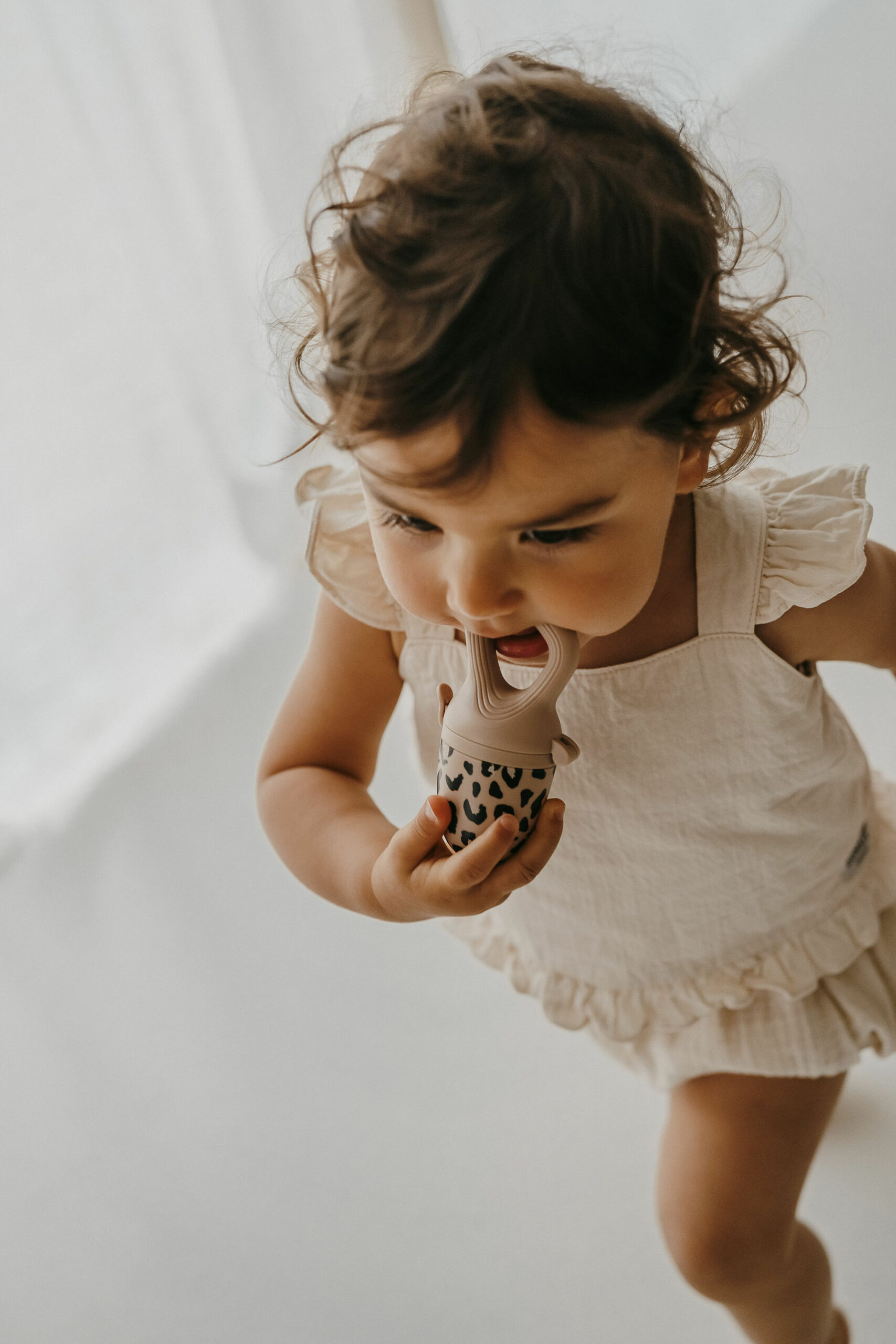 Notre tétine grignoteuse, véritable best-seller et adorée des parents comme des tout-petits, revient dans une nouvelle version léopard. Ce coloris inédit apporte une touche originale et audacieuse aux indispensables du quotidien. Idéale pour les premières découvertes gustatives, elle allie sécurité, praticité et style, le tout avec une prise en main adaptée aux petites mains de bébé.