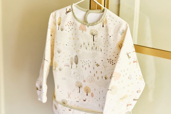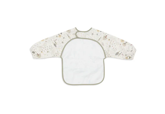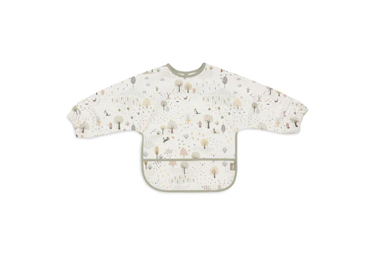 Ce bavoir à manches imperméable de la collection Tiny Park est parfait pour les repas. Le tissu imperméable garde bébé au sec et les manches protègent des éclaboussures. L’imprimé adorable avec arbres, canards et animaux apporte une touche joyeuse. Pratique, confortable et trop mignon !