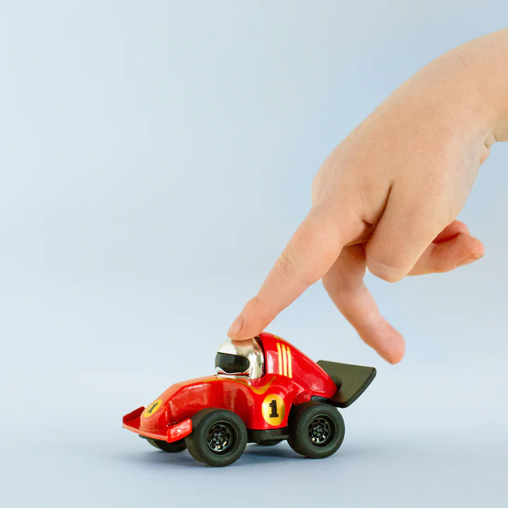Hé, hop ! Cette mini voiture de course rétro ultra rapide et sans pile est prête à rouler ! Les enfants s’amuseront comme des fous à faire courir ces petites voitures agiles en métal moulé sous pression. Il suffit d’appuyer dessus pour activer le mécanisme de course, et c’est parti !